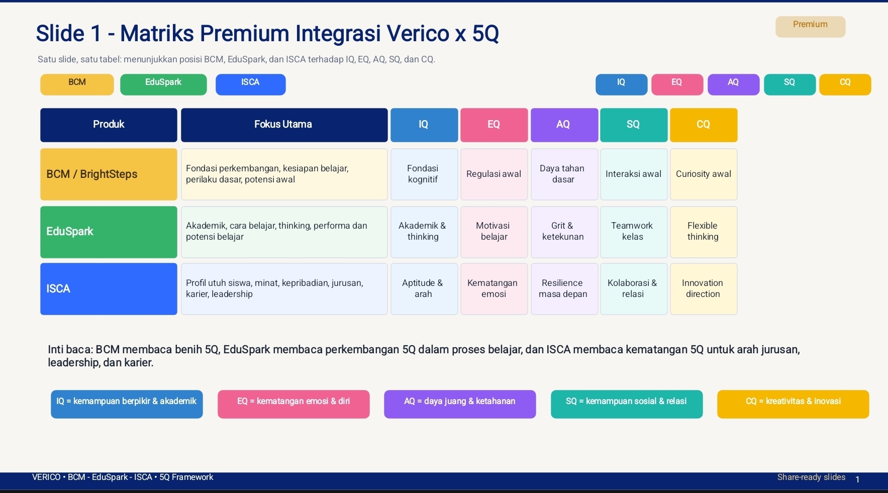 Dalam konteks ini, Verico tidak dapat disederhanakan sebagai layanan assessment, dan tidak pula sejalan dengan pendekatan agency pendidikan pada umumnya. Verico bekerja sebagai kerangka strategis yang menyatu dengan proses pendidikan itu sendiri, membangun kesinambungan antara fondasi, perkembangan, dan arah masa depan dalam satu sistem yang elegan dan berkelanjutan.